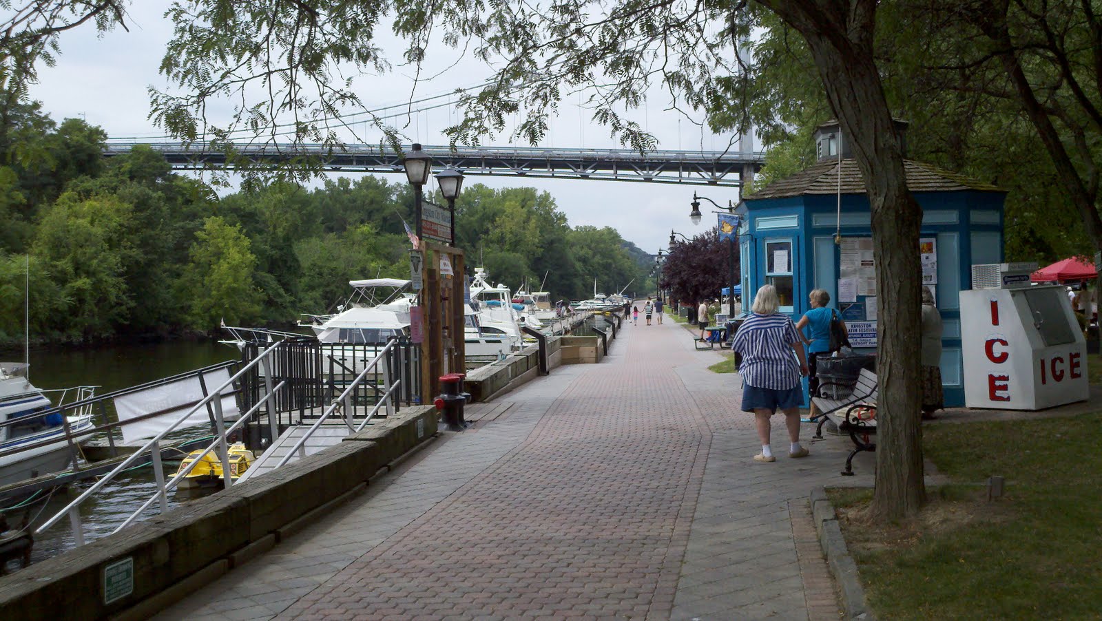 Poughkeepsie has no waterfront, so we stayed at a free dock across the river from Poughkeepsie attached to a restaurant called Mariner's. However, there is a bridge in Poughkeepsie that is notable.